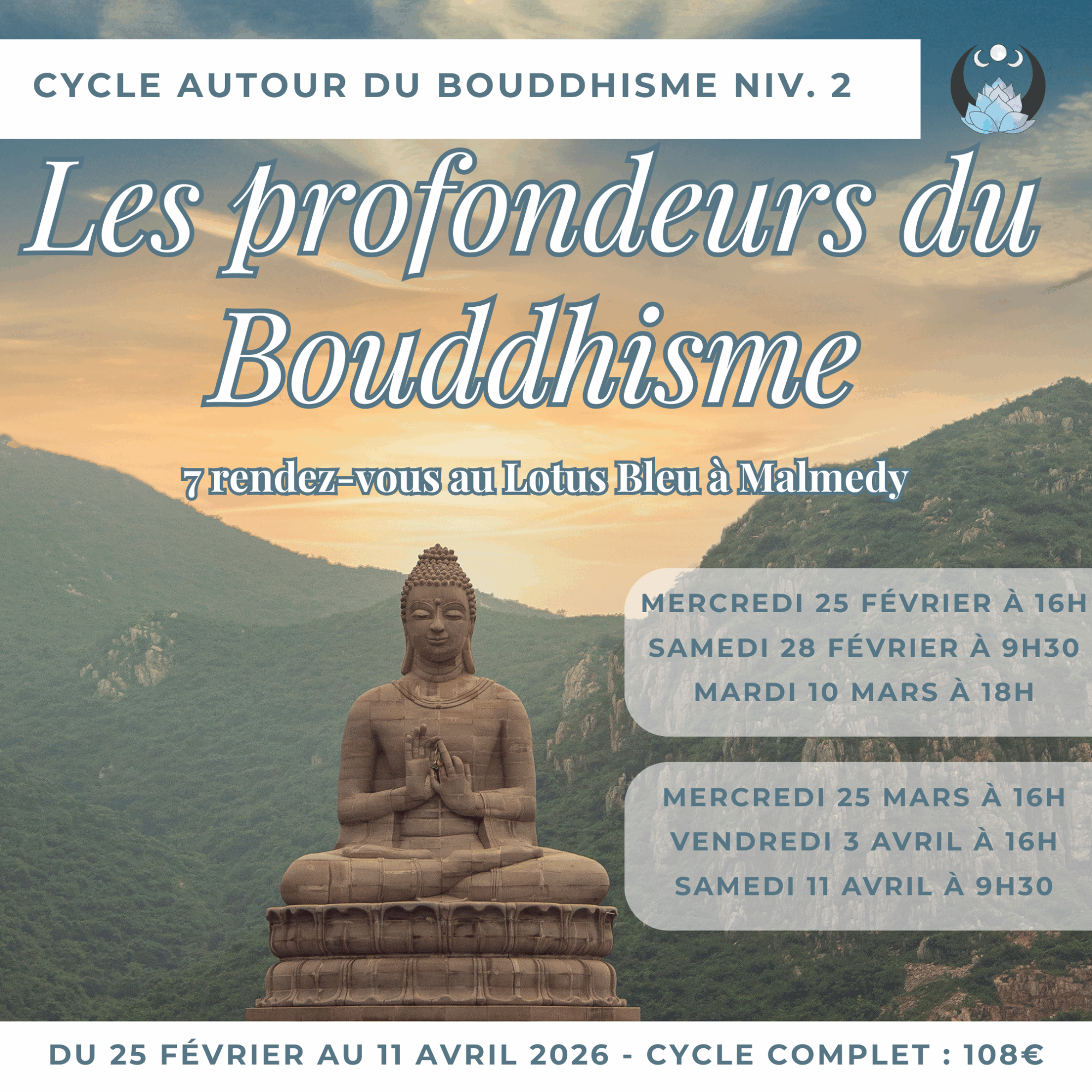 Un cycle de 7 rencontres, tout en douceur et en profondeur, pour aller plus loin dans la compréhension et l’expérience du bouddhisme.